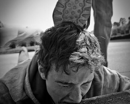 The actual reason behind the altercation is unknown but video shows the man in black makes the man in red “Bite the Curb” in an intense way. Video further shows a third guy intervening and trying to help the guy in red shirt.
