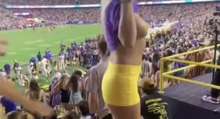 News reports say she flashed the crowd, posted about “pregaming flashing the whole stadium,” and was escorted away by law enforcement, though local authorities haven’t confirmed formal charges.