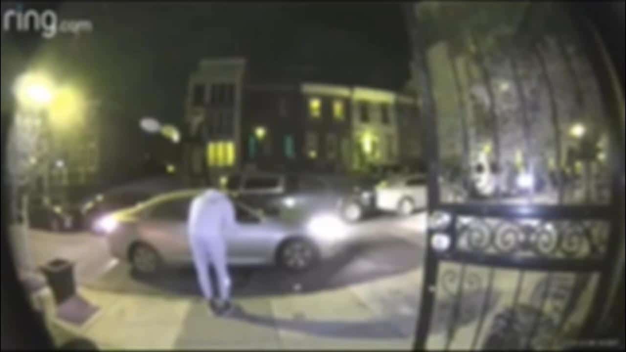 The Ring camera surveillance video shared on Twitter shows Geez, whose real name is Derrick Gant, exit a home and walk up to a parked car on the 1200 block of North Taney Street in Brewerytown.